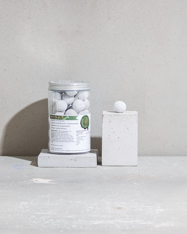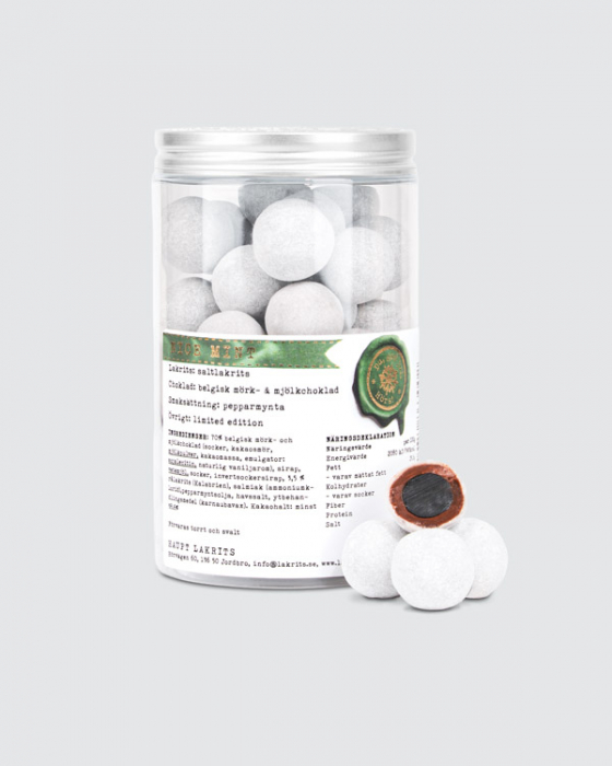 Långkokt saltlakrits, täckt av len belgisk choklad och förfinad med friskheten från äkta indisk pepparmynta.