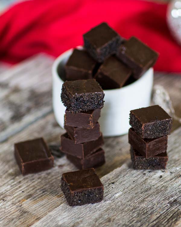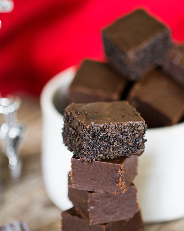 5. Skär lakritsfudgen i lagom stora bitar, och om du vill kan du rulla de i lite lakritsgranulat för extra lakrits!