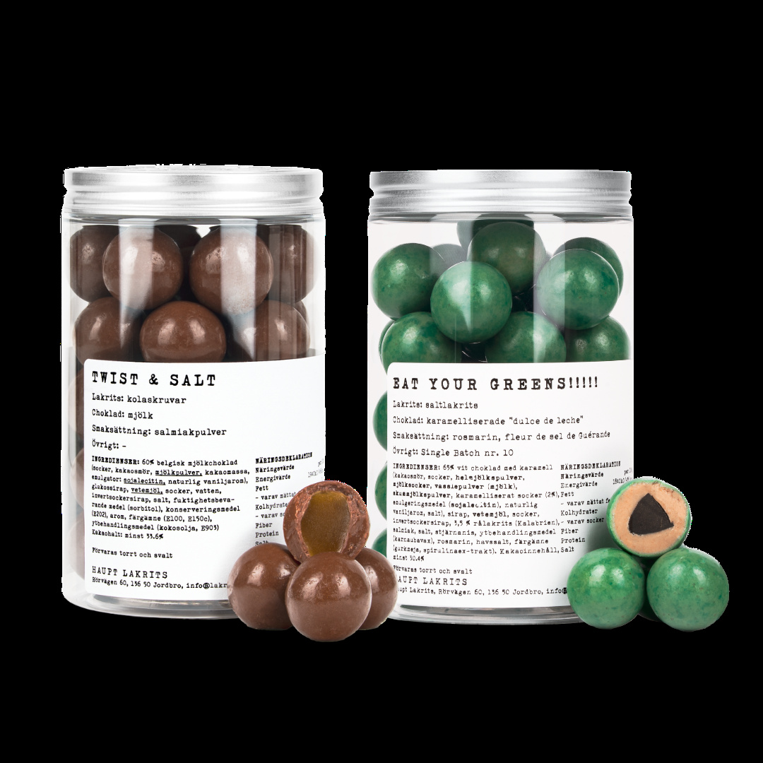 Innehåller Twist & Salt (250g) samt Eat Your Greens!!! (250g)