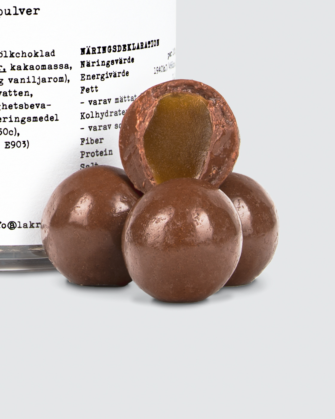 Twist & Salt (250 g) – kolasöt kärna omsluten av belgisk mjölkchoklad smaksatt med salmiakpulver.